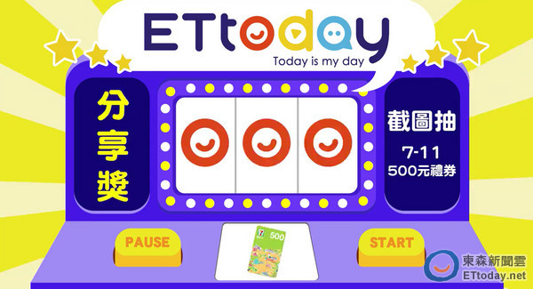 只要到ETtoday新聞雲臉書粉絲團參加拉霸機活動,截到ET獎、分享獎、互動獎或影音獎的任一畫面,在該貼文留言處貼上截圖並打上該獎項名稱,就能獲得該獎項的抽獎機會。