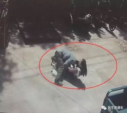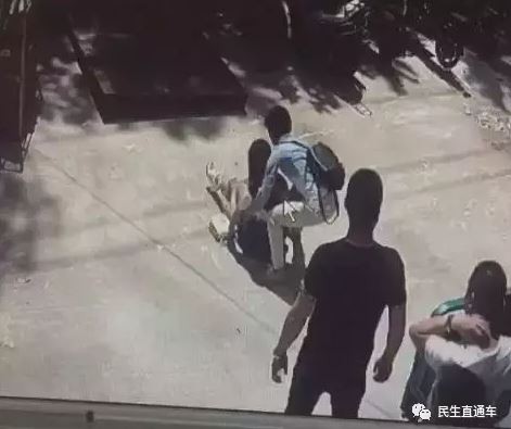▲男子突然間把前方女子撲倒在地上。(圖/翻攝自微信,下同)