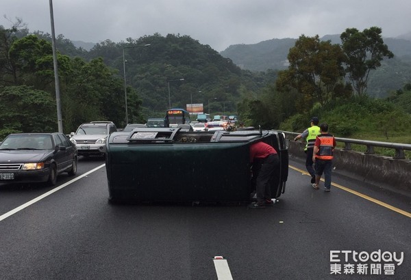 國道5號北上8.5K處,19日下午4時15分發生翻車意外,一輛廂型車疑似因天雨路滑翻覆,車上5人中有3人可以自行脫困、不須送醫,而後座2人則受困車內,分別是一名59歲男性和55歲女性,直到救護人員到場才被協助救出,送萬芳醫院救治。國道員警已到場疏散交通,目前3線道剩外側1線可通行。
