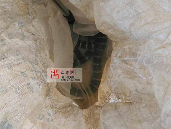▼男子抓到的雨傘節。(圖/翻攝自新浪網)