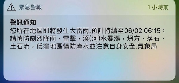 ▼許多北台灣網友收到警訊通知。