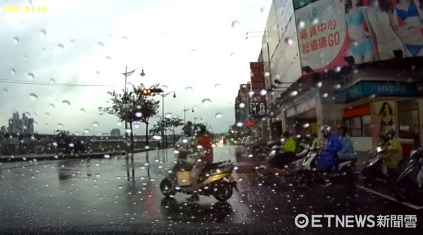 ▼空拍義消分隊長楊冠威見狀立即冒雨指揮交通,引導車輛讓道。(圖/記者莊智勝翻攝)