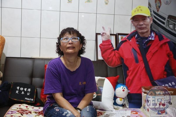 53歲的陳素玲因為46歲就當阿嬤,所以自稱「笑年嬤」(閩南語音,指年輕的祖母),她的老公張振仙理所當然也就成了「笑年公」,2人都是貨運司機,一人專跑花東,一人跑北高。日子過得不富裕,卻十分滿足:「以前出門,我們都會手牽手。」而她的牽手,去年8月被診斷出食道癌,今年2月過世。