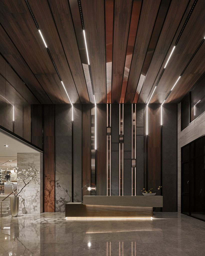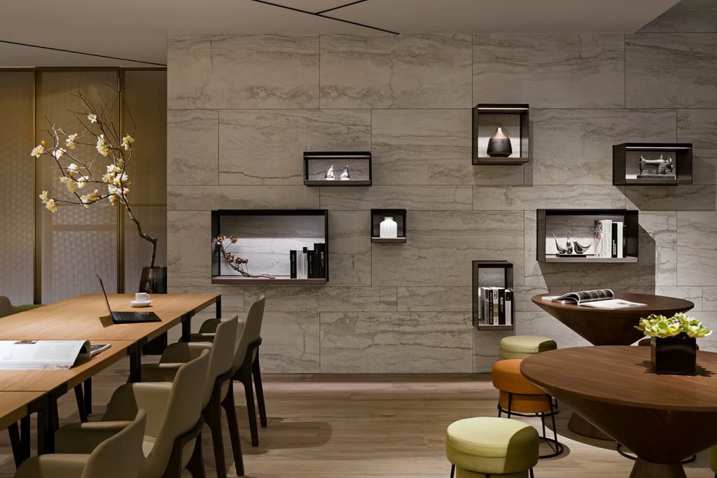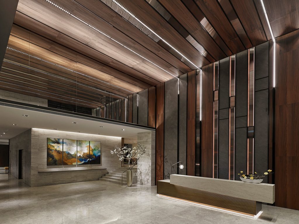黃總監也提到,在順天璞玥的公設設計中,採用進口磚材的應用取代了一般住宅公設習慣採用的大理石,不只有助於日後保養維護,其紋理變化豐富的表面,更為整體空間營造高雅別緻的氛圍,在燈光的渲染下展現別具特色的視覺效果。