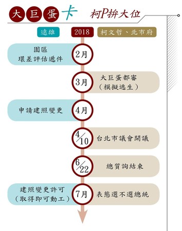 台北市長柯文哲連任成功後,問鼎2020總統呼聲不斷,他雖然動作頻頻卻始終未鬆口;知情人士透露,柯P農曆年前拜會一位有意承接大巨蛋的本土企業主時,明確表態會在6月解決大巨蛋續建爭議,恰巧與他打算在6月宣布參選總統與否的時機吻合,有意在表態前搬開參選的最大路障已不言而喻。
