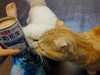 隨後女兒就在貓貓的「死亡逼視」下,一邊緊張地將湯麵吃完。爸爸說,「女兒很尷尬,但也傻笑跟貓咪說,『這麵麵貓貓不能吃』,只是貓咪還是一直看,害我女兒也不敢吃,哈哈。」同時也提到,店長貓一開始很乖,後來忍不住,拼命用手撥女兒,甚至跳到桌上,下秒再被老闆娘趕下去。