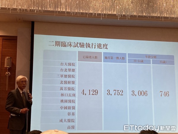 林奏延指出,原預期招募3700名受試者,然而在這2個月間收案總計篩選了4129人,施打第一劑的總人數為3752人,當中20~64歲族群有3006人,65歲以上的高齡者則有746人,達到收案人數20%。