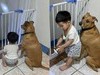 ►想下樓探險!萌弟手拿探照燈蹲坐柵欄前 米克斯同款背影融化網