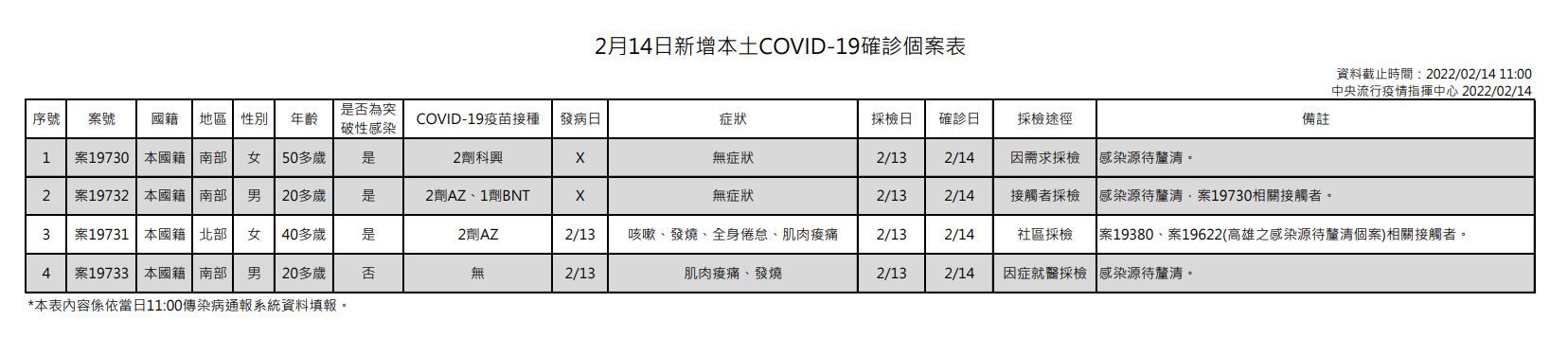 ▲2/14本土個案。(圖/指揮中心提供)※點圖放大