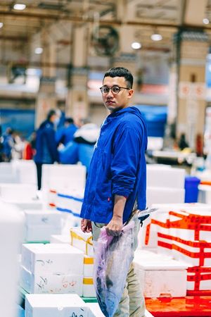 凌晨2、3點的高速公路,沒什麼車,通往那時最熱鬧的地方:魚市。嘈雜到嗓門加大,氣味紛雜,聞不出魚臭,千百盞燈照出的世界已無黑暗。我下了貨車,踏入潮濕,邊走邊點頭或是捶打他人手臂,幾句髒話,都只是招呼。當我習慣這些生活,我就接受了自己是名魚販。魚販中,有幾個跟我相似的年輕人,有老派如阿公的人;有幾個會讓人想起誰,有幾個是他自己的模樣。