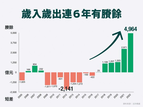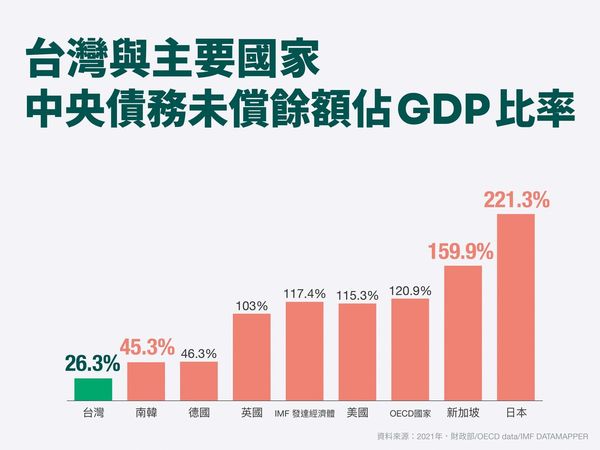 中央政府債務占當年度GDP的比重,已經從2012年高峰時的34%,下降至2021年的26.3%,和2022年的26.1%,領先世界主要國家,財政紀律受到國際評級機構高度肯定。