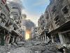 ▲加薩地區22日被以色列空襲攻擊,大量煙霧冒出。(圖/路透)