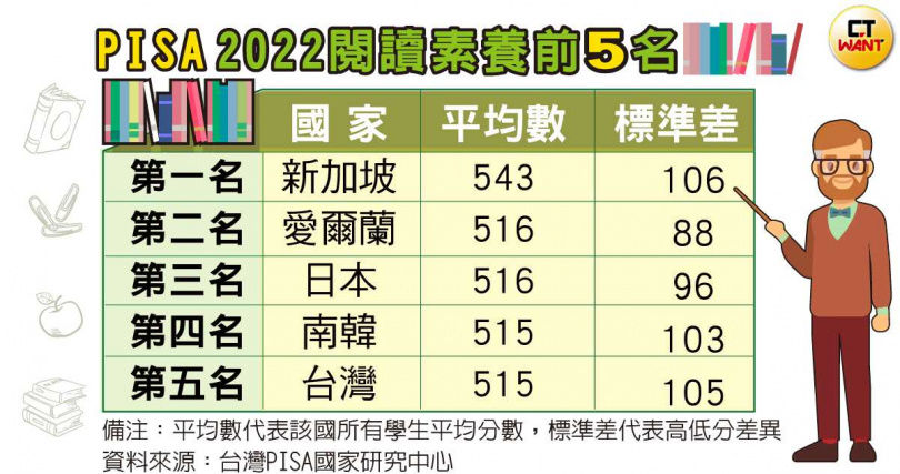 台灣自2006年參加學生能力國際評估計劃(PISA),其中閱讀素養的國際排序2018年前在 16 到 23 名之間、2022年則大幅進步到第5名,教育部認為歸功於108課綱,但其實從2018年時就有專家認為台灣學生的閱讀素養呈現雙峰,到了2022年更加明顯。
