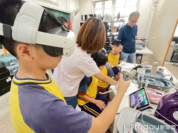 ▲台南市XR數位共學中心攜手雲科大團隊開發VR教材《紫斑蝶大蒐秘》,學生體驗沉浸式學習。(記者林東良翻攝,下同)
