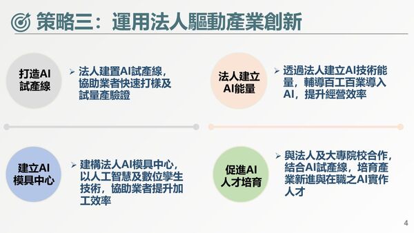 經濟部今(26日)在行政院會報告「中部精密智慧新核心推動方案」,以台積電為核心帶動先進製程、先進封裝聚落;以美光為核心發展高階記憶體產業鏈;以漢翔為中心打造無人機非紅供應鏈。另外,為協助產業打國際盃,經濟部未來也將加速修正《企業併購法》,輔導產業成立控股公司,再祭稅捐優惠抵減做為誘因。