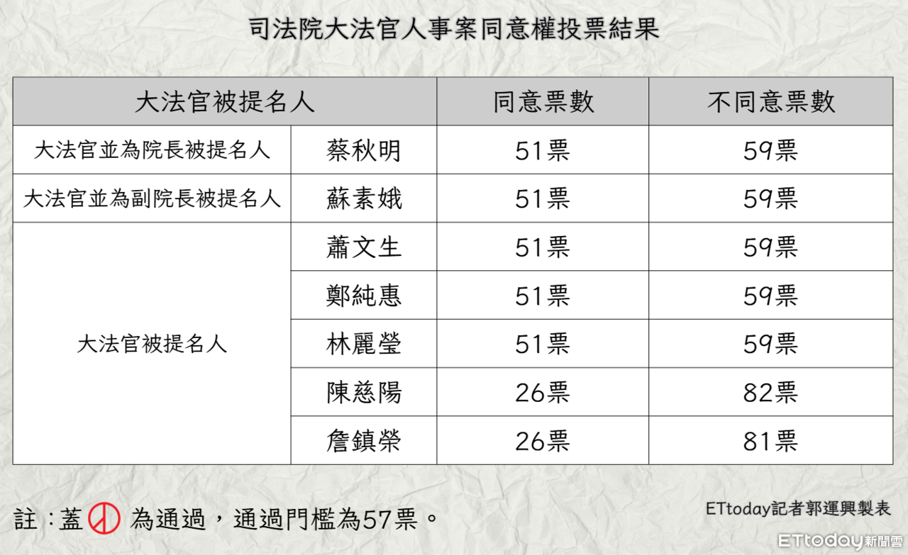▼司法院大法官人事同意權案投票結果。(圖/記者郭運興製圖,點圖放大)