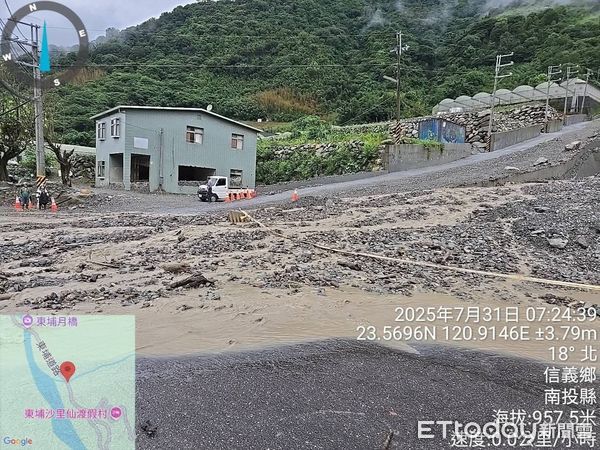 縣府說明,信義鄉土石流及坍方阻斷保甲林溪附近防汛道路、往地利村主要幹道、東埔投95線4K +800、以及明德村部分道路泥流佔據,工務處、鄉公所、水保署南投分署合作,請開口契約廠商持續協助第一時間搶通;另針對南投市低窪地,半固定式、移動式抽水機持續維持預佈狀態,亦與市公所保持緊密聯繫調度。