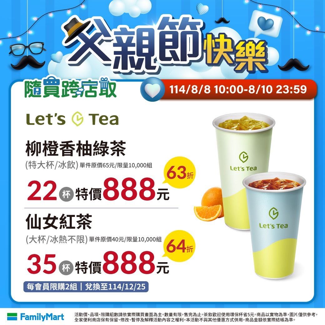 ◾柳橙香柚綠茶原價65元,特價22杯888元(63折)。