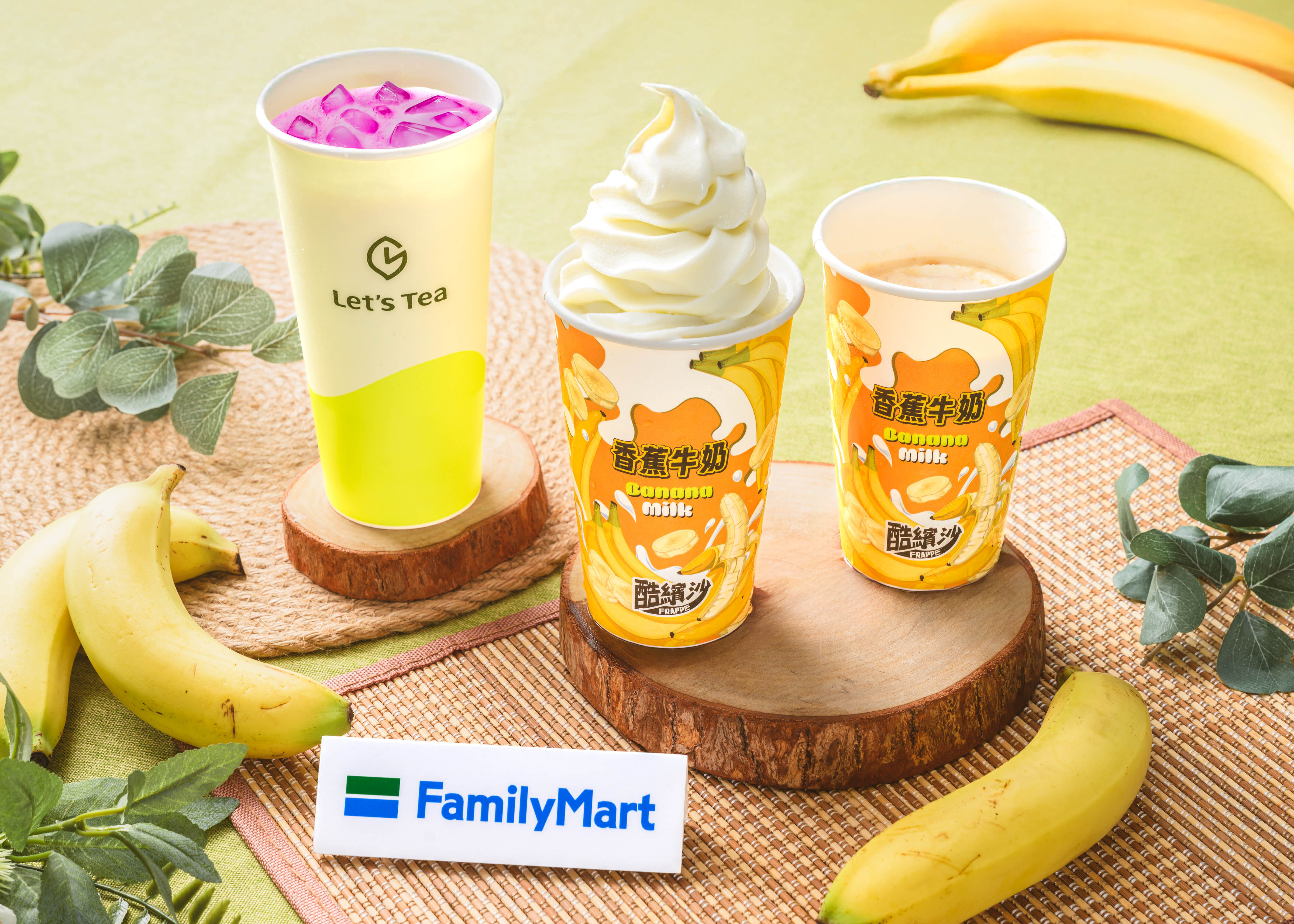 全家也攜手農業部農糧署及香蕉策略聯盟,今年6月底起陸續以「香蕉積分趣」APP活動,研發推出「一根QQ 蕉」香蕉造型蛋糕;近日再推出夏季吸睛新品Let’s Tea「香蕉火龍果牛奶」,嚴選熟成黃金香蕉、紅肉火龍果,融合醇厚奶香,天然無負擔,原價65元,9月2日前嚐鮮價59元。
