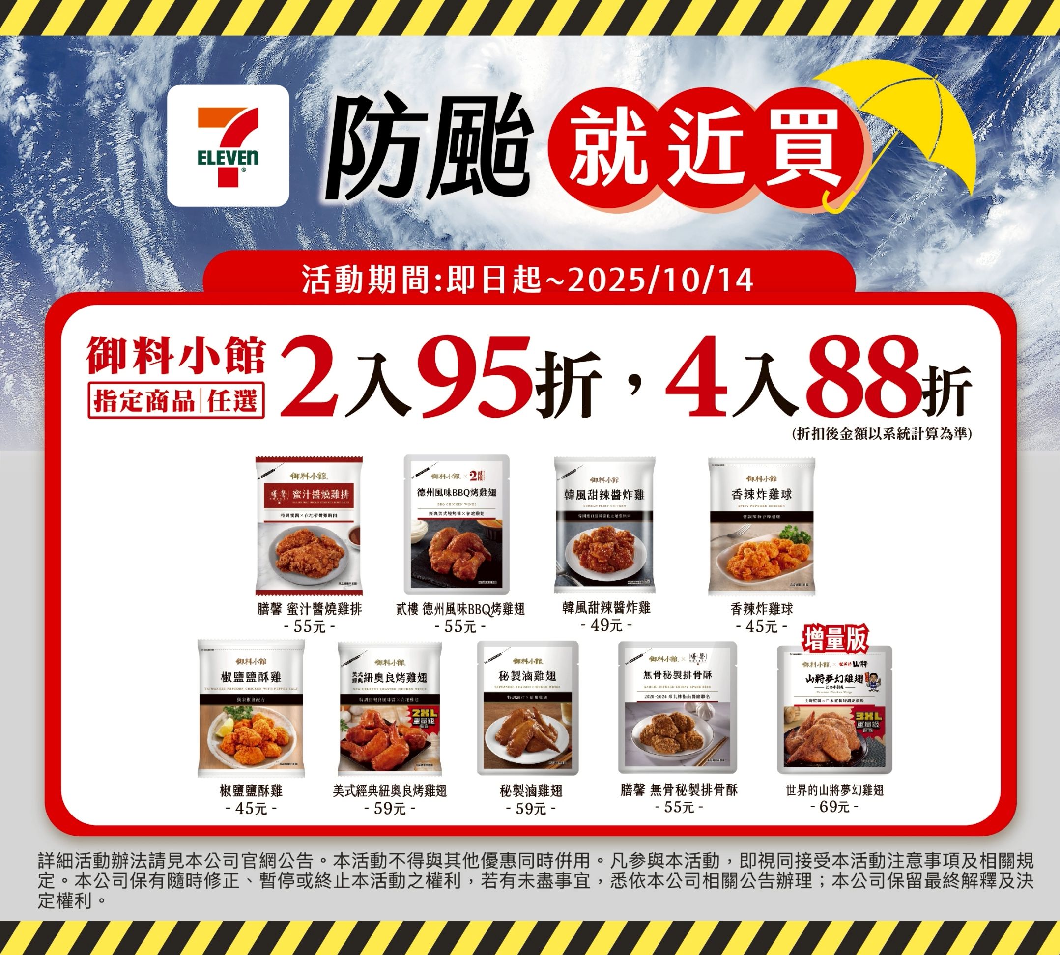 7-11與台北晶華酒店合作的「晶華-紅燒牛肉麵」售價139元,還可搭配10月14日前冷凍指定即食小點「2件95折、4件88折」,提供炸物、烤物超過20款豐富選擇。