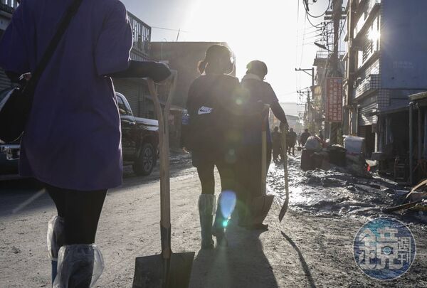 超人不一定有披風,這些「鏟子英雄」連日來持續挺進災區,前進災民被淤泥淹掉近半層樓高的家,不分男女老幼,全體總動員,搬出驚人的淤泥和廢棄物,同時清潔人員也緊接著進行消毒工作,維持災區的衛生環境,守護所有人的健康安全,希望讓光復早日恢復昔日風采。