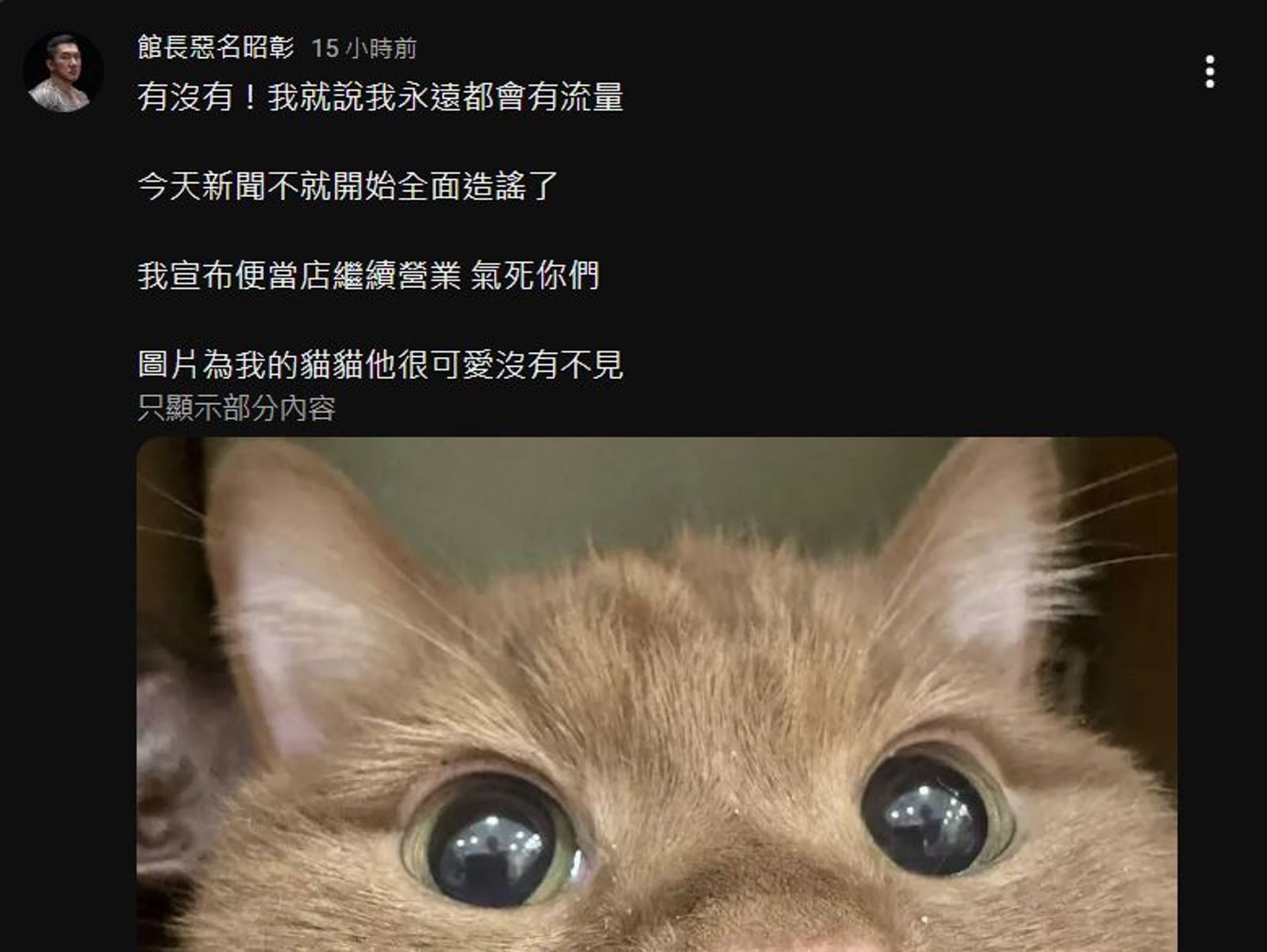 粉專才宣布珍重再見 館長轟遭造謠:繼續營業氣死你們