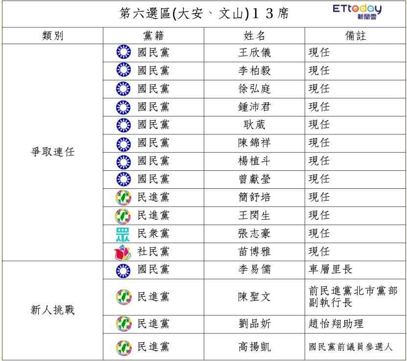 ▼北市2026大安文山議員爭取連任與新人挑戰表。(圖/AI製圖,點圖放大)