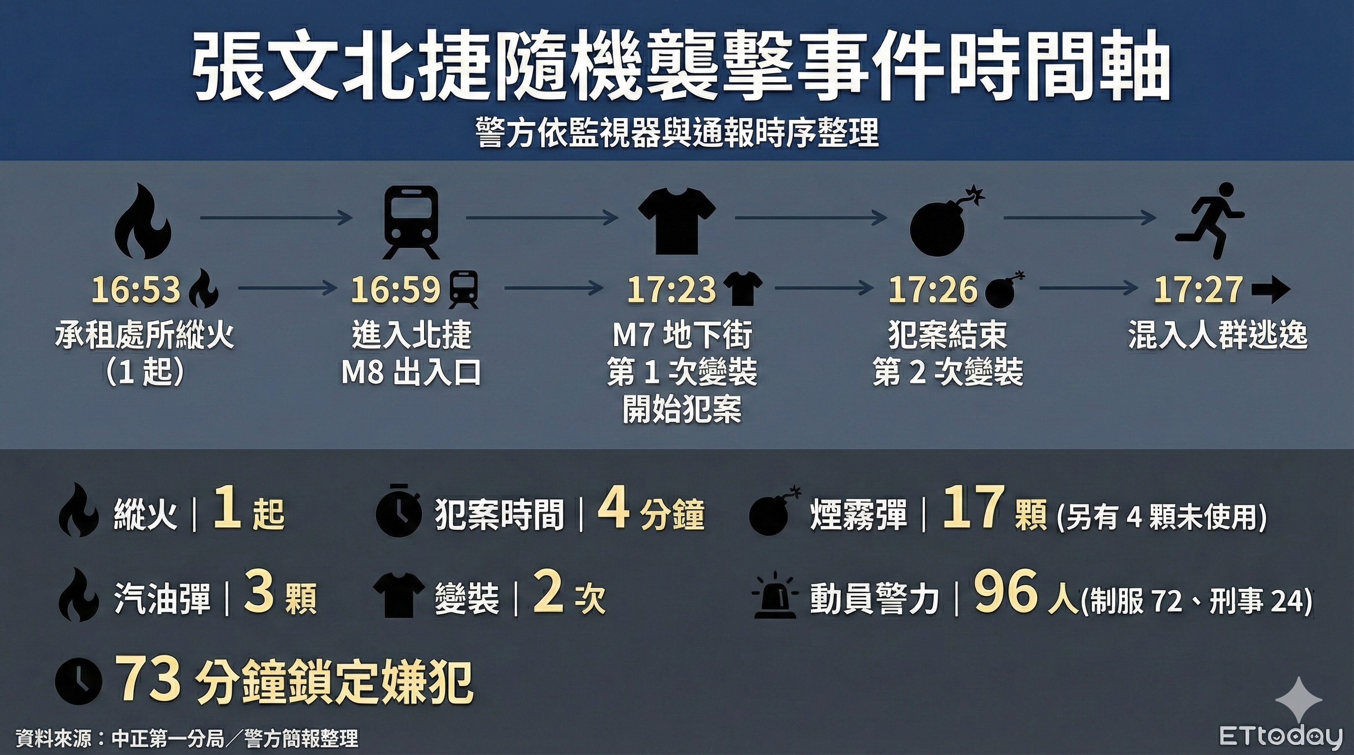 ▲北捷攻擊時間軸。(圖/記者黃宥寧AI製圖,點圖放大)
