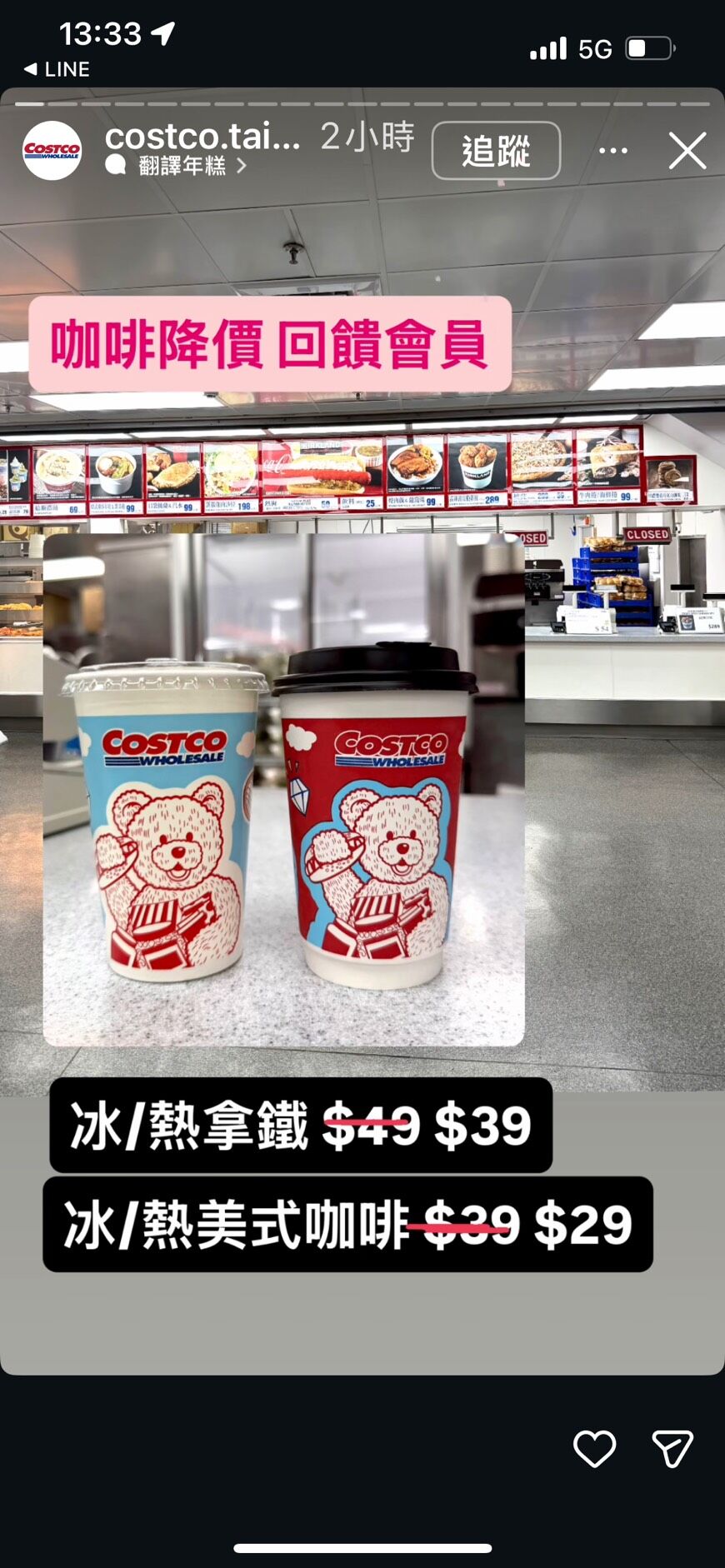 ▲好市多也在IG限時動態公布咖啡降價資訊。(圖/翻攝自好市多IG)