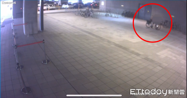 ▲莊大搖大擺偷走高檔單車(紅圈處),過程全被監視器拍下。(圖/警方提供)