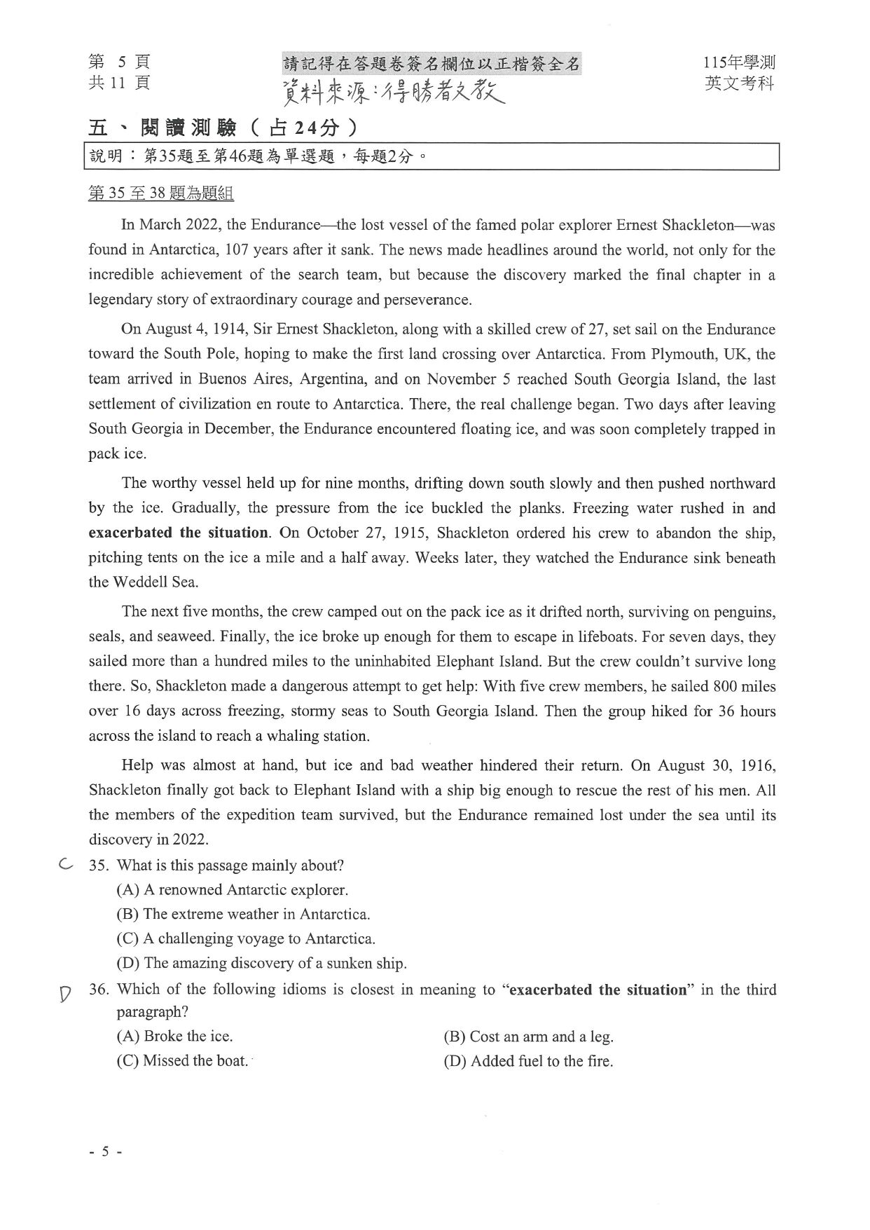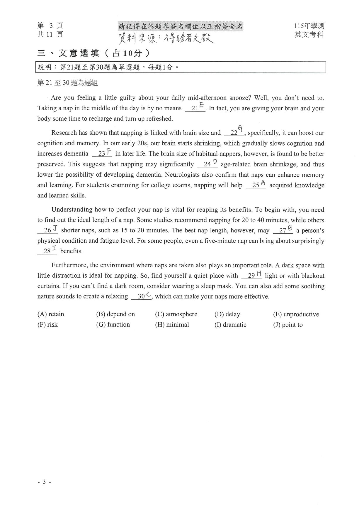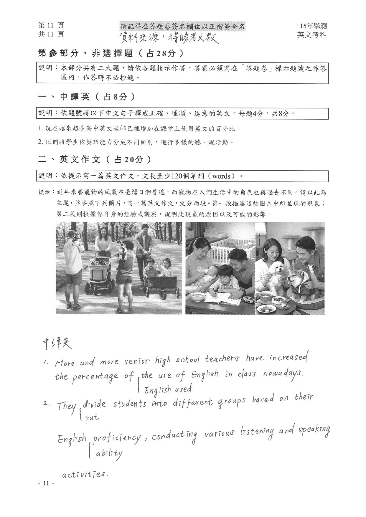 ▼學測「英文科參考解答」出爐。(圖/得勝者文教提供)※點圖放大