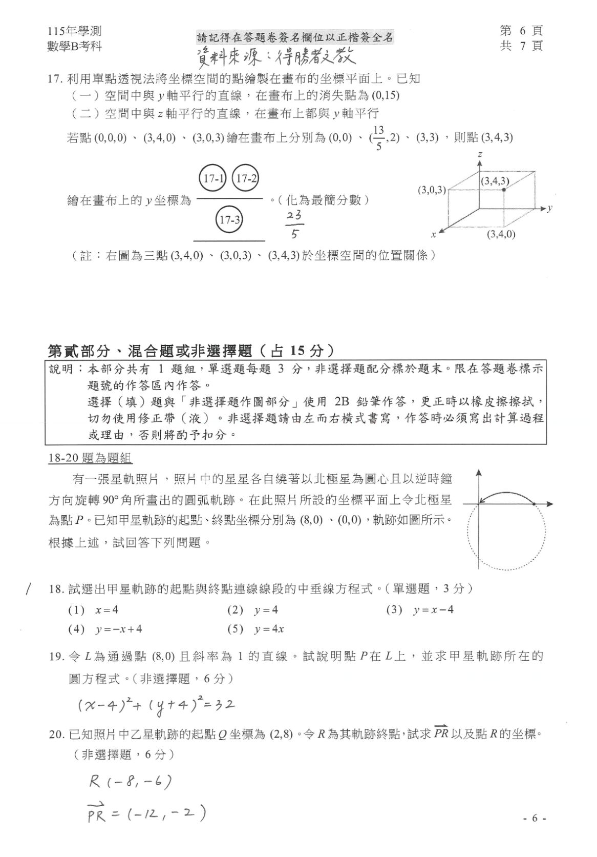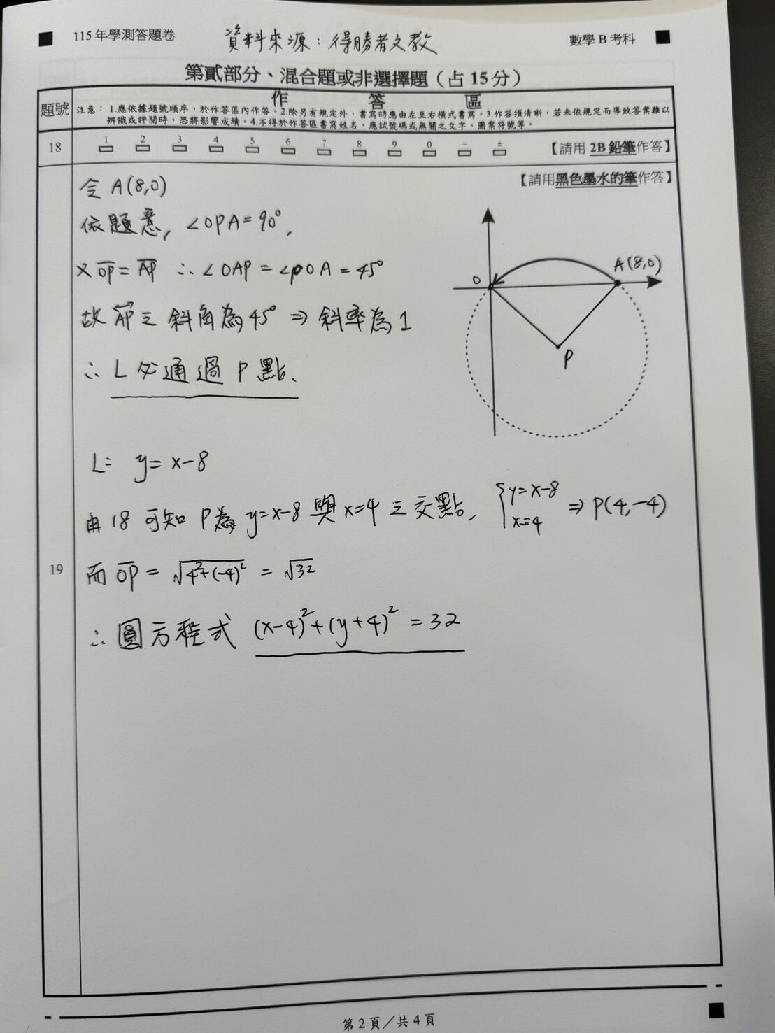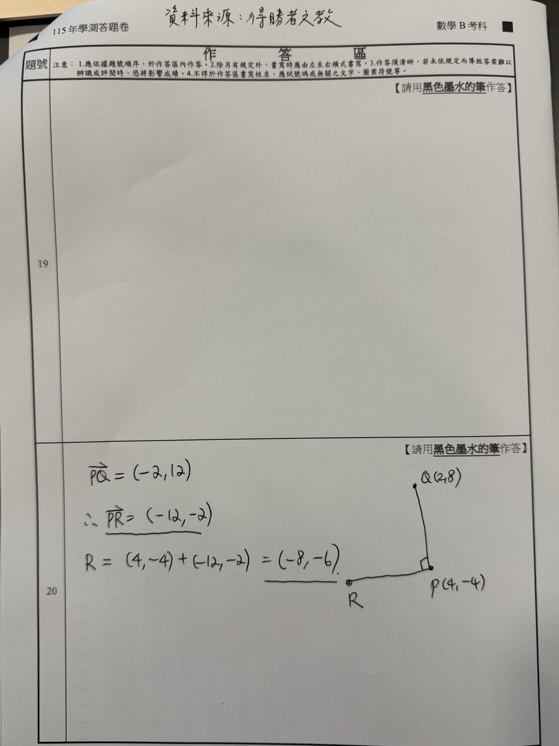 ▼學測數B解答。(圖/得勝者文教提供)※點圖放大