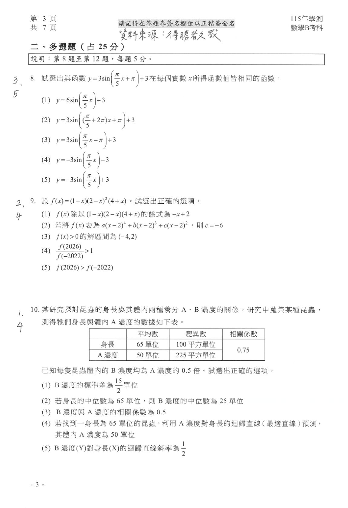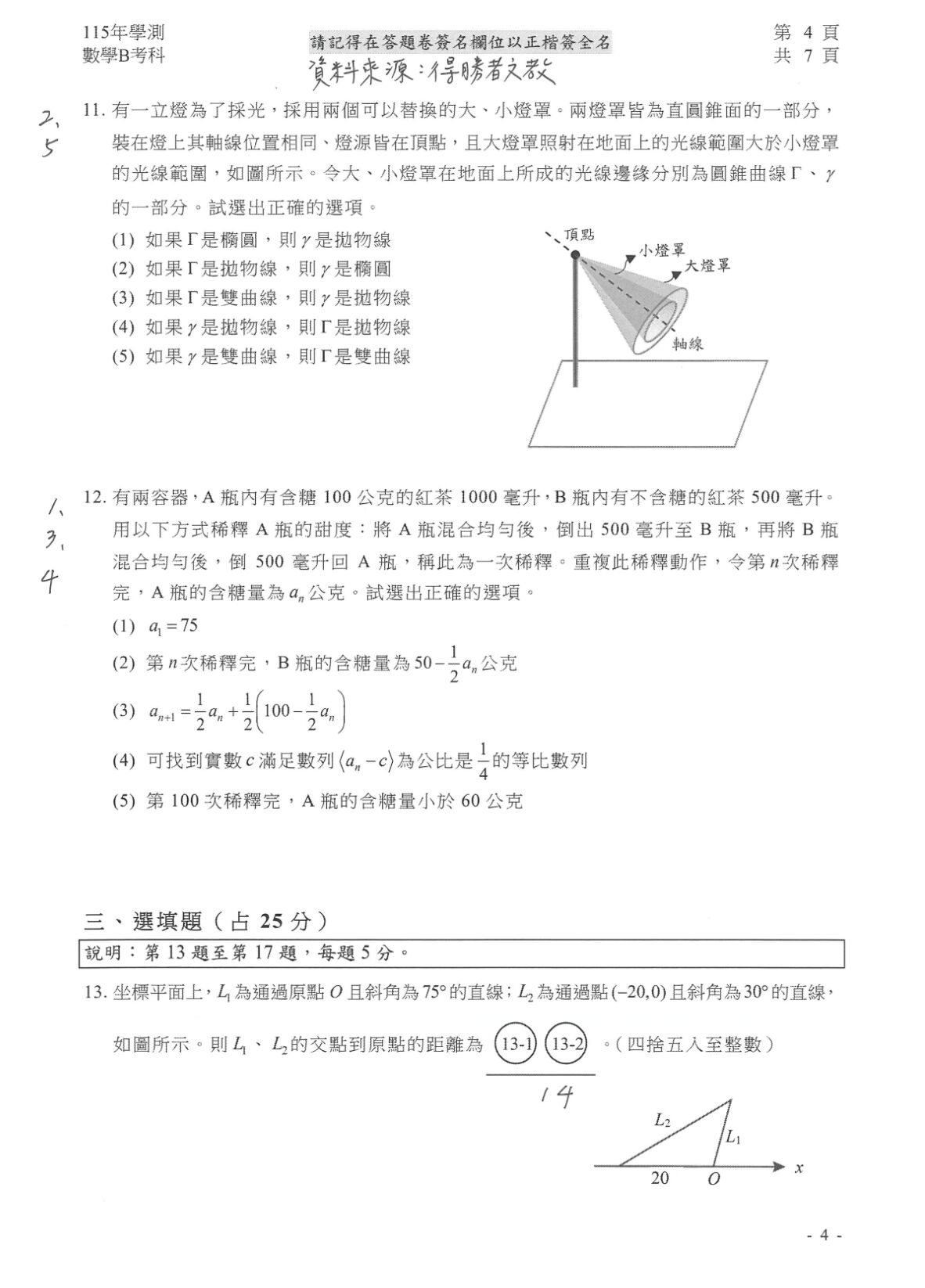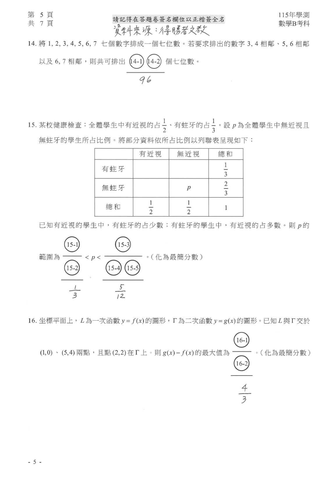 ▼學測數B解答。(圖/得勝者文教提供)※點圖放大