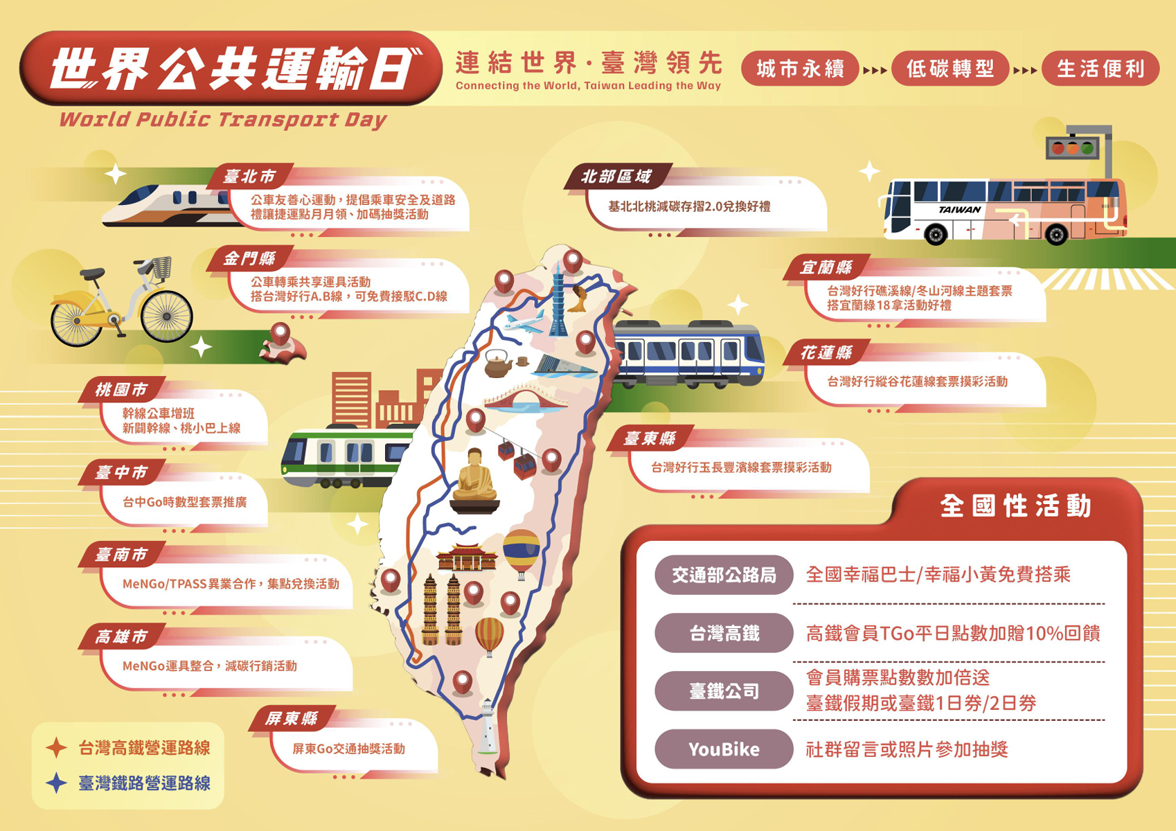 ▲響應「世界公共運輸日」,交通部號召12縣市及4家交通事業單位5月推出優惠。(圖/運研所提供)