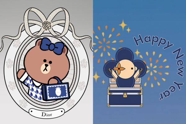 年底節慶氣氛濃厚,祝福貼圖超級實用,不少精品推出LINE貼圖,免費下載一定要收!其中Dior與LINE FRIENDS合作,讓兔兔拿著最新蝴蝶結包款和熊大一起看台北101煙火,Louis Vuitto..